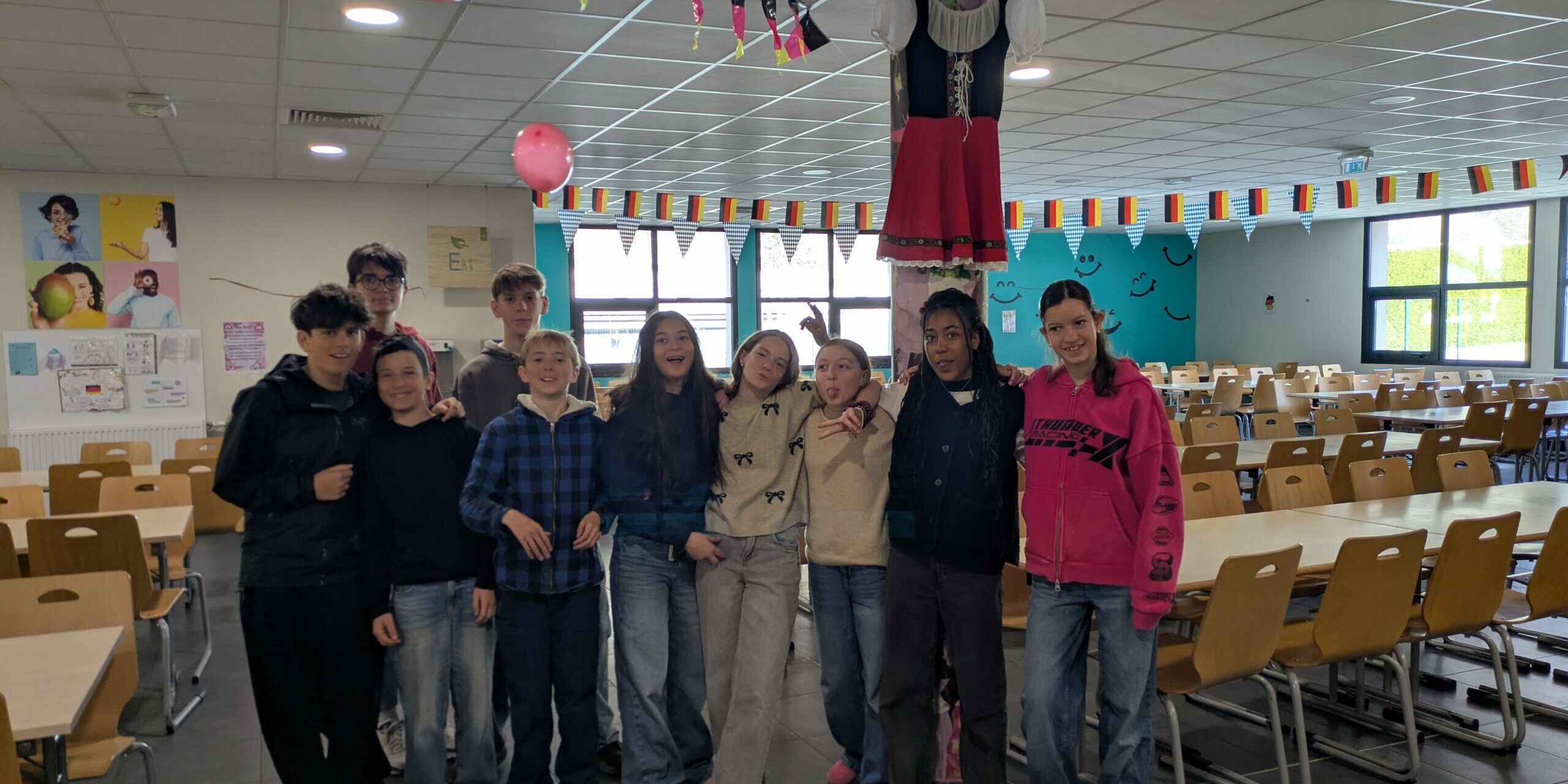 Les élèves de 5e ont décoré la salle aux couleurs de l’Allemagne, à la suite d’une séquence sur l’alimentation. Des cartes de menus ont également été réalisées avec la participation de quelques élèves volontaires de 3e.