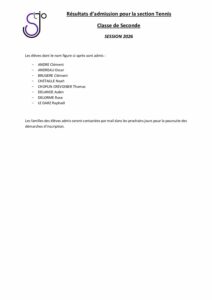 Résultats admission tennis 2026